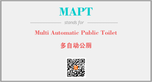 以上为Multi Automatic Public Toilet英文缩略词MAPT的中文解释,以及该英文缩写在英语的流行度、分类和应用领域方面的信息。