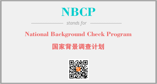 上述内容是“National Background Check Program”作为“NBCP”的缩写,解释为“国家背景调查计划”时的信息,以及英文缩略词NBCP所代表的英文单词,其对应的中文拼音、详细解释以及在英文中的流行度和相关分类、应用领域及应用示例等。