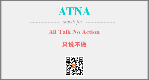 上述内容是“All Talk No Action”作为“ATNA”的缩写,解释为“只说不做”时的信息,以及英文缩略词ATNA所代表的英文单词,其对应的中文拼音、详细解释以及在英文中的流行度和相关分类、应用领域及应用示例等。