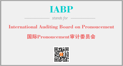 上述内容是“International Auditing Board on Pronoucement”作为“IABP”的缩写,解释为“国际Pronoucement审计委员会”时的信息,以及英文缩略词IABP所代表的英文单词,其对应的中文拼音、详细解释以及在英文中的流行度和相关分类、应用领域及应用示例等。