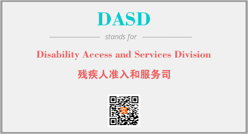 上述内容是“Disability Access and Services Division”作为“DASD”的缩写,解释为“残疾人准入和服务司”时的信息,以及英文缩略词DASD所代表的英文单词,其对应的中文拼音、详细解释以及在英文中的流行度和相关分类、应用领域及应用示例等。