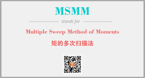 英文缩略词“MSMM”经常作为“Multiple Sweep Method of Moments”的英文缩写来使用,中文表示:“矩的多次扫描法”。本文将详细介绍英文缩写词MSMM所代表英文单词,其对应的中文拼音、详细解释以及在英语中的流行度。此外,还有关于缩略词MSMM的分类、应用领域及相关应用示例等。