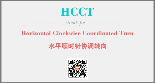 英文缩略词“HCCT”经常作为“Horizontal Clockwise Coordinated Turn”的英文缩写来使用,中文表示:“水平顺时针协调转向”。本文将详细介绍英文缩写词HCCT所代表英文单词,其对应的中文拼音、详细解释以及在英语中的流行度。此外,还有关于缩略词HCCT的分类、应用领域及相关应用示例等。