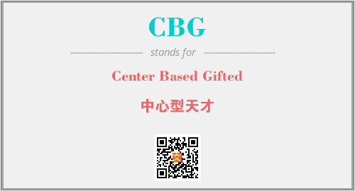上述内容是“Center Based Gifted”作为“CBG”的缩写,解释为“中心型天才”时的信息,以及英文缩略词CBG所代表的英文单词,其对应的中文拼音、详细解释以及在英文中的流行度和相关分类、应用领域及应用示例等。