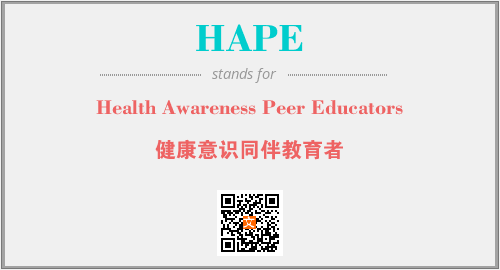以上为Health Awareness Peer Educators英文缩略词HAPE的中文解释,以及该英文缩写在英语的流行度、分类和应用领域方面的信息。