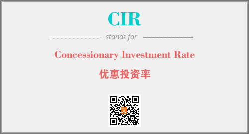 以上为Concessionary Investment Rate英文缩略词CIR的中文解释,以及该英文缩写在英语的流行度、分类和应用领域方面的信息。