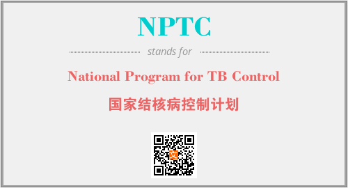 英文缩略词“NPTC”经常作为“National Program for TB Control”的英文缩写来使用,中文表示:“国家结核病控制计划”。本文将详细介绍英文缩写词NPTC所代表英文单词,其对应的中文拼音、详细解释以及在英语中的流行度。此外,还有关于缩略词NPTC的分类、应用领域及相关应用示例等。