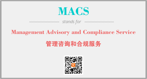 上述内容是“Management Advisory and Compliance Service”作为“MACS”的缩写,解释为“管理咨询和合规服务”时的信息,以及英文缩略词MACS所代表的英文单词,其对应的中文拼音、详细解释以及在英文中的流行度和相关分类、应用领域及应用示例等。