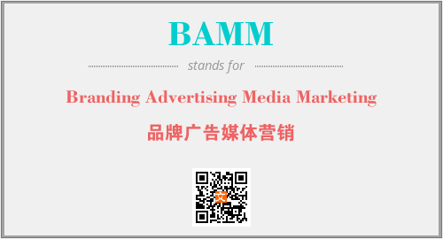 以上为Branding Advertising Media Marketing英文缩略词BAMM的中文解释,以及该英文缩写在英语的流行度、分类和应用领域方面的信息。