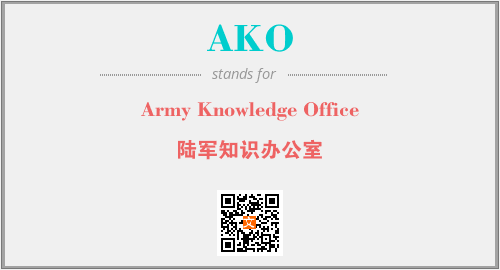 英文缩略词“AKO”经常作为“Army Knowledge Office”的英文缩写来使用,中文表示:“陆军知识办公室”。本文将详细介绍英文缩写词AKO所代表英文单词,其对应的中文拼音、详细解释以及在英语中的流行度。此外,还有关于缩略词AKO的分类、应用领域及相关应用示例等。