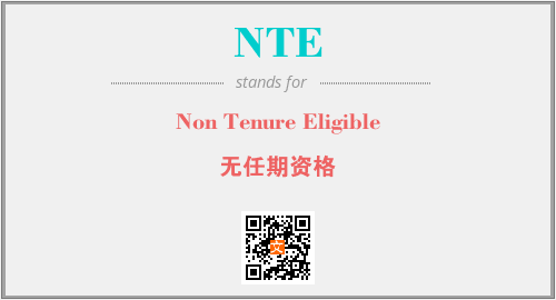 上述内容是“Non Tenure Eligible”作为“NTE”的缩写,解释为“无任期资格”时的信息,以及英文缩略词NTE所代表的英文单词,其对应的中文拼音、详细解释以及在英文中的流行度和相关分类、应用领域及应用示例等。