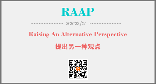 以上为Raising An Alternative Perspective英文缩略词RAAP的中文解释,以及该英文缩写在英语的流行度、分类和应用领域方面的信息。