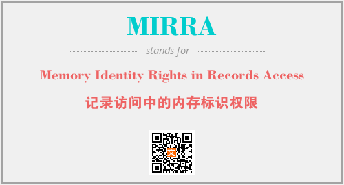 上述内容是“Memory Identity Rights in Records Access”作为“MIRRA”的缩写,解释为“记录访问中的内存标识权限”时的信息,以及英文缩略词MIRRA所代表的英文单词,其对应的中文拼音、详细解释以及在英文中的流行度和相关分类、应用领域及应用示例等。