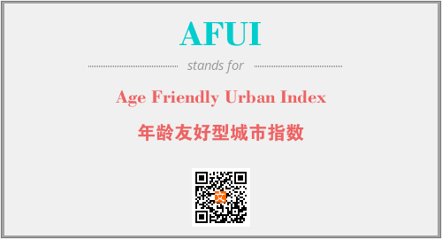 上述内容是“Age Friendly Urban Index”作为“AFUI”的缩写,解释为“年龄友好型城市指数”时的信息,以及英文缩略词AFUI所代表的英文单词,其对应的中文拼音、详细解释以及在英文中的流行度和相关分类、应用领域及应用示例等。