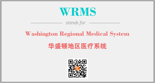 上述内容是“Washington Regional Medical System”作为“WRMS”的缩写,解释为“华盛顿地区医疗系统”时的信息,以及英文缩略词WRMS所代表的英文单词,其对应的中文拼音、详细解释以及在英文中的流行度和相关分类、应用领域及应用示例等。
