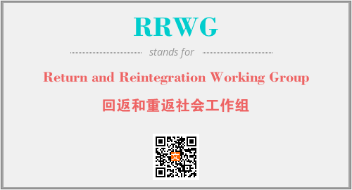 上述内容是“Return and Reintegration Working Group”作为“RRWG”的缩写,解释为“回返和重返社会工作组”时的信息,以及英文缩略词RRWG所代表的英文单词,其对应的中文拼音、详细解释以及在英文中的流行度和相关分类、应用领域及应用示例等。