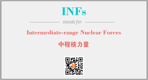 上述内容是“Intermediate-range Nuclear Forces”作为“INFs”的缩写,解释为“中程核力量”时的信息,以及英文缩略词INFs所代表的英文单词,其对应的中文拼音、详细解释以及在英文中的流行度和相关分类、应用领域及应用示例等。