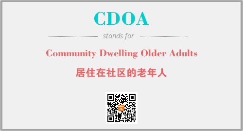 以上为Community Dwelling Older Adults英文缩略词CDOA的中文解释,以及该英文缩写在英语的流行度、分类和应用领域方面的信息。