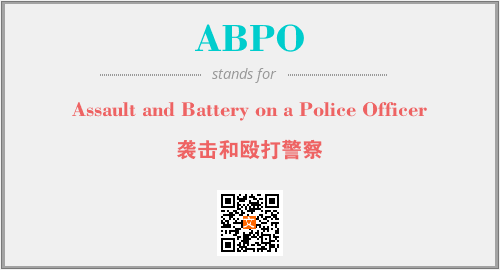 上述内容是“Assault and Battery on a Police Officer”作为“ABPO”的缩写,解释为“袭击和殴打警察”时的信息,以及英文缩略词ABPO所代表的英文单词,其对应的中文拼音、详细解释以及在英文中的流行度和相关分类、应用领域及应用示例等。
