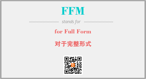 上述内容是“for Full Form”作为“FFM”的缩写,解释为“对于完整形式”时的信息,以及英文缩略词FFM所代表的英文单词,其对应的中文拼音、详细解释以及在英文中的流行度和相关分类、应用领域及应用示例等。