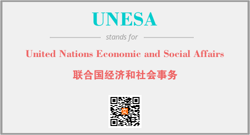 上述内容是“United Nations Economic and Social Affairs”作为“UNESA”的缩写,解释为“联合国经济和社会事务”时的信息,以及英文缩略词UNESA所代表的英文单词,其对应的中文拼音、详细解释以及在英文中的流行度和相关分类、应用领域及应用示例等。