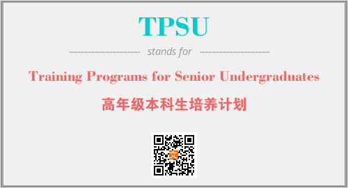 以上为Training Programs for Senior Undergraduates英文缩略词TPSU的中文解释,以及该英文缩写在英语的流行度、分类和应用领域方面的信息。