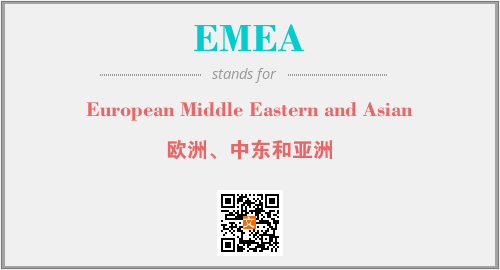 上述内容是“European Middle Eastern and Asian”作为“EMEA”的缩写,解释为“欧洲、中东和亚洲”时的信息,以及英文缩略词EMEA所代表的英文单词,其对应的中文拼音、详细解释以及在英文中的流行度和相关分类、应用领域及应用示例等。