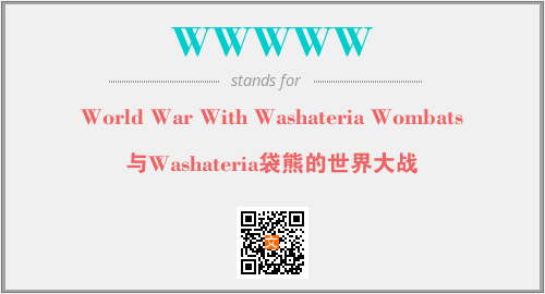 以上为World War With Washateria Wombats英文缩略词WWWWW的中文解释,以及该英文缩写在英语的流行度、分类和应用领域方面的信息。