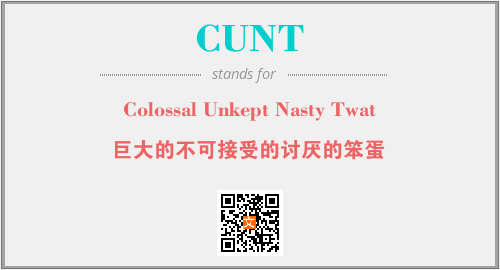 上述内容是“Colossal Unkept Nasty Twat”作为“CUNT”的缩写,解释为“巨大的不可接受的讨厌的笨蛋”时的信息,以及英文缩略词CUNT所代表的英文单词,其对应的中文拼音、详细解释以及在英文中的流行度和相关分类、应用领域及应用示例等。