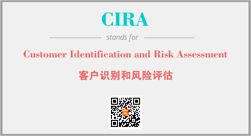 上述内容是“Customer Identification and Risk Assessment”作为“CIRA”的缩写,解释为“客户识别和风险评估”时的信息,以及英文缩略词CIRA所代表的英文单词,其对应的中文拼音、详细解释以及在英文中的流行度和相关分类、应用领域及应用示例等。