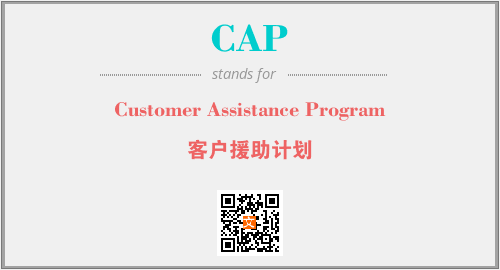 上述内容是“Customer Assistance Program”作为“CAP”的缩写,解释为“客户援助计划”时的信息,以及英文缩略词CAP所代表的英文单词,其对应的中文拼音、详细解释以及在英文中的流行度和相关分类、应用领域及应用示例等。