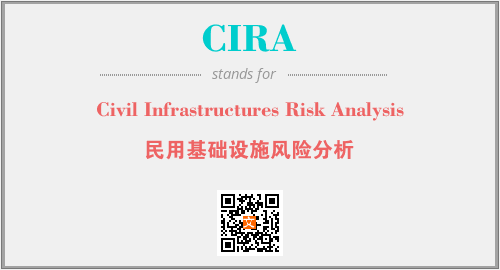 上述内容是“Civil Infrastructures Risk Analysis”作为“CIRA”的缩写,解释为“民用基础设施风险分析”时的信息,以及英文缩略词CIRA所代表的英文单词,其对应的中文拼音、详细解释以及在英文中的流行度和相关分类、应用领域及应用示例等。