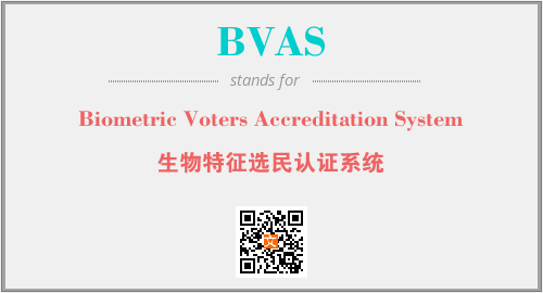 上述内容是“Biometric Voters Accreditation System”作为“BVAS”的缩写,解释为“生物特征选民认证系统”时的信息,以及英文缩略词BVAS所代表的英文单词,其对应的中文拼音、详细解释以及在英文中的流行度和相关分类、应用领域及应用示例等。