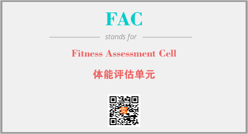 上述内容是“Fitness Assessment Cell”作为“FAC”的缩写,解释为“体能评估单元”时的信息,以及英文缩略词FAC所代表的英文单词,其对应的中文拼音、详细解释以及在英文中的流行度和相关分类、应用领域及应用示例等。