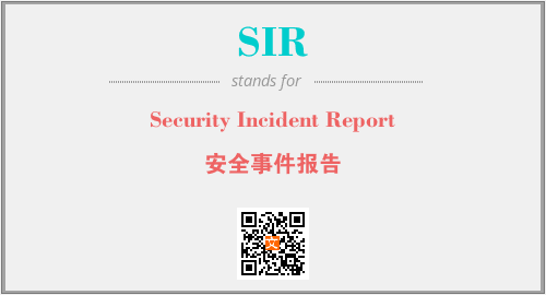 上述内容是“Security Incident Report”作为“SIR”的缩写,解释为“安全事件报告”时的信息,以及英文缩略词SIR所代表的英文单词,其对应的中文拼音、详细解释以及在英文中的流行度和相关分类、应用领域及应用示例等。