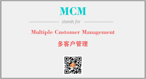 英文缩略词“MCM”经常作为“Multiple Customer Management”的英文缩写来使用,中文表示:“多客户管理”。本文将详细介绍英文缩写词MCM所代表英文单词,其对应的中文拼音、详细解释以及在英语中的流行度。此外,还有关于缩略词MCM的分类、应用领域及相关应用示例等。