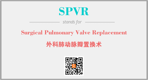 上述内容是“Surgical Pulmonary Valve Replacement”作为“SPVR”的缩写,解释为“外科肺动脉瓣置换术”时的信息,以及英文缩略词SPVR所代表的英文单词,其对应的中文拼音、详细解释以及在英文中的流行度和相关分类、应用领域及应用示例等。