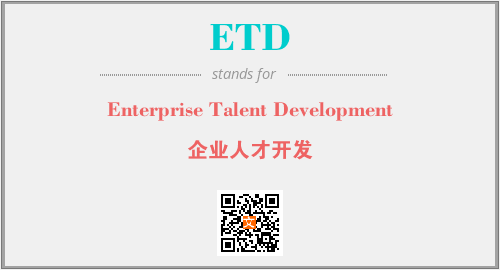 上述内容是“Enterprise Talent Development”作为“ETD”的缩写,解释为“企业人才开发”时的信息,以及英文缩略词ETD所代表的英文单词,其对应的中文拼音、详细解释以及在英文中的流行度和相关分类、应用领域及应用示例等。