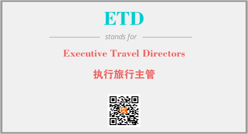 上述内容是“Executive Travel Directors”作为“ETD”的缩写,解释为“执行旅行主管”时的信息,以及英文缩略词ETD所代表的英文单词,其对应的中文拼音、详细解释以及在英文中的流行度和相关分类、应用领域及应用示例等。