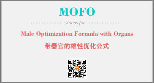 上述内容是“Male Optimization Formula with Organs”作为“MOFO”的缩写,解释为“带器官的雄性优化公式”时的信息,以及英文缩略词MOFO所代表的英文单词,其对应的中文拼音、详细解释以及在英文中的流行度和相关分类、应用领域及应用示例等。