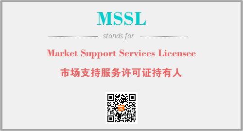 上述内容是“Market Support Services Licensee”作为“MSSL”的缩写,解释为“市场支持服务许可证持有人”时的信息,以及英文缩略词MSSL所代表的英文单词,其对应的中文拼音、详细解释以及在英文中的流行度和相关分类、应用领域及应用示例等。