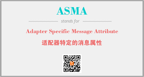 上述内容是“Adapter Specific Message Attribute”作为“ASMA”的缩写,解释为“适配器特定的消息属性”时的信息,以及英文缩略词ASMA所代表的英文单词,其对应的中文拼音、详细解释以及在英文中的流行度和相关分类、应用领域及应用示例等。