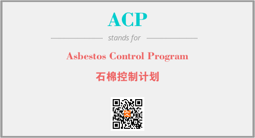 英文缩略词“ACP”经常作为“Asbestos Control Program”的英文缩写来使用,中文表示:“石棉控制计划”。本文将详细介绍英文缩写词ACP所代表英文单词,其对应的中文拼音、详细解释以及在英语中的流行度。此外,还有关于缩略词ACP的分类、应用领域及相关应用示例等。