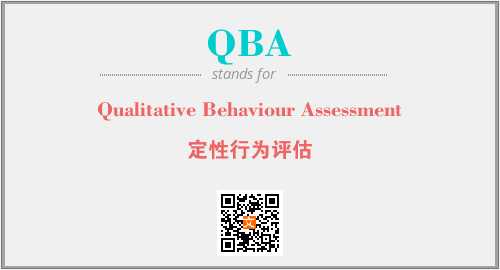 英文缩略词“QBA”经常作为“Qualitative Behaviour Assessment”的英文缩写来使用,中文表示:“定性行为评估”。本文将详细介绍英文缩写词QBA所代表英文单词,其对应的中文拼音、详细解释以及在英语中的流行度。此外,还有关于缩略词QBA的分类、应用领域及相关应用示例等。
