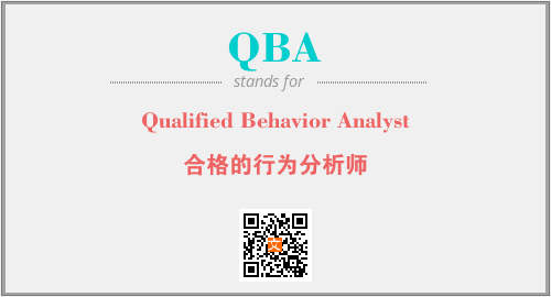 英文缩略词“QBA”经常作为“Qualified Behavior Analyst”的英文缩写来使用,中文表示:“合格的行为分析师”。本文将详细介绍英文缩写词QBA所代表英文单词,其对应的中文拼音、详细解释以及在英语中的流行度。此外,还有关于缩略词QBA的分类、应用领域及相关应用示例等。