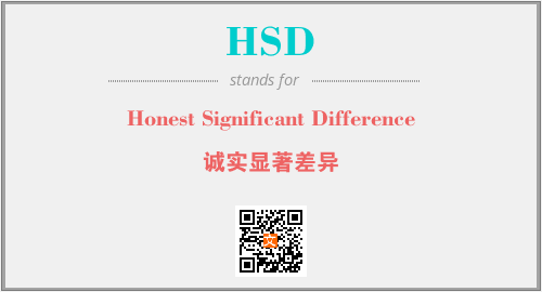 上述内容是“Honest Significant Difference”作为“HSD”的缩写,解释为“诚实显著差异”时的信息,以及英文缩略词HSD所代表的英文单词,其对应的中文拼音、详细解释以及在英文中的流行度和相关分类、应用领域及应用示例等。
