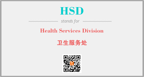 英文缩略词“HSD”经常作为“Health Services Division”的英文缩写来使用,中文表示:“卫生服务处”。本文将详细介绍英文缩写词HSD所代表英文单词,其对应的中文拼音、详细解释以及在英语中的流行度。此外,还有关于缩略词HSD的分类、应用领域及相关应用示例等。