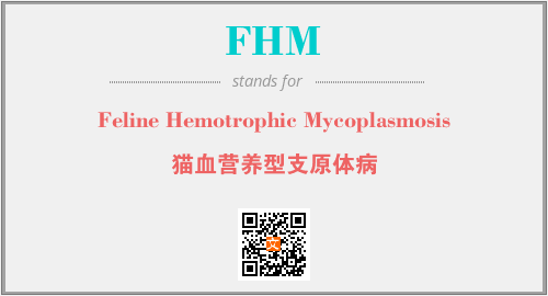 上述内容是“Feline Hemotrophic Mycoplasmosis”作为“FHM”的缩写,解释为“猫血营养型支原体病”时的信息,以及英文缩略词FHM所代表的英文单词,其对应的中文拼音、详细解释以及在英文中的流行度和相关分类、应用领域及应用示例等。