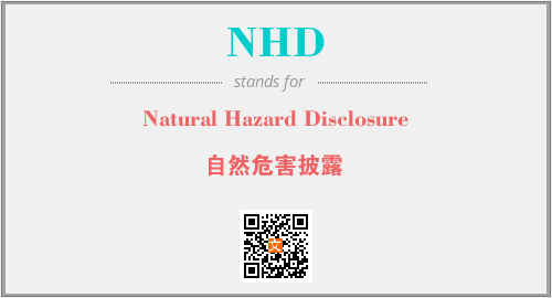 上述内容是“Natural Hazard Disclosure”作为“NHD”的缩写,解释为“自然危害披露”时的信息,以及英文缩略词NHD所代表的英文单词,其对应的中文拼音、详细解释以及在英文中的流行度和相关分类、应用领域及应用示例等。