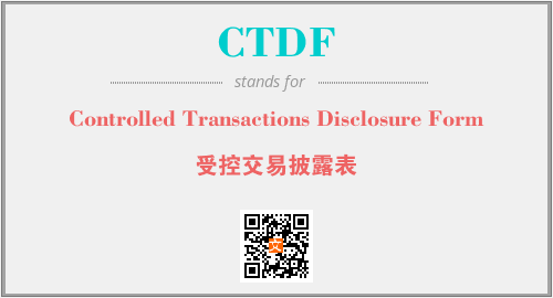 上述内容是“Controlled Transactions Disclosure Form”作为“CTDF”的缩写,解释为“受控交易披露表”时的信息,以及英文缩略词CTDF所代表的英文单词,其对应的中文拼音、详细解释以及在英文中的流行度和相关分类、应用领域及应用示例等。